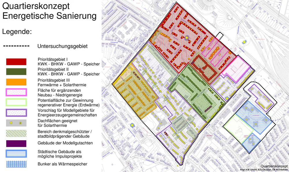Den entscheidenden Beitrag leistet die Erneuerung der Energieversorgung. Allein mit Langzeitenergiespeichern und Blockheizkraftwerken unter Einbindung von regenerativen Energien wird sich der CO2-Ausstoß gegenüber dem Ist-Zustand nahezu halbieren. Bei stadtbildprägenden und denkmalgeschützten Gebäuden kann auf Außendämmung verzichtet werden. Durch eine Verschiebung des Maßnahmenschwerpunkts von der baulichen zur versorgungstechnischen Modernisierung ist das Konzept sozialverträglicher und wirtschaftlicher als konventionelle Vorhaben.